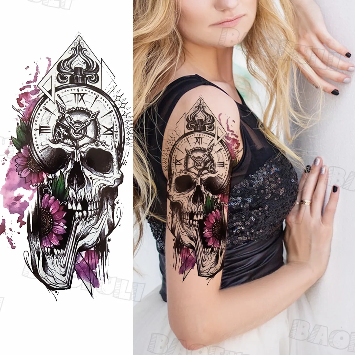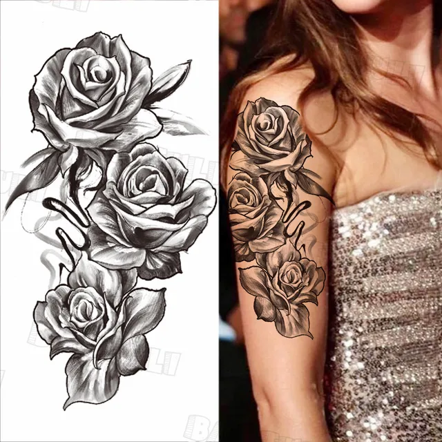 קנו קעקועים ואמנות גוף Warrior Knight Temporary Tattoos For Men Adult Compass Wolf Fake Tattoo Sticker Realistic Cool Half Sleeve Tatoos Thigh